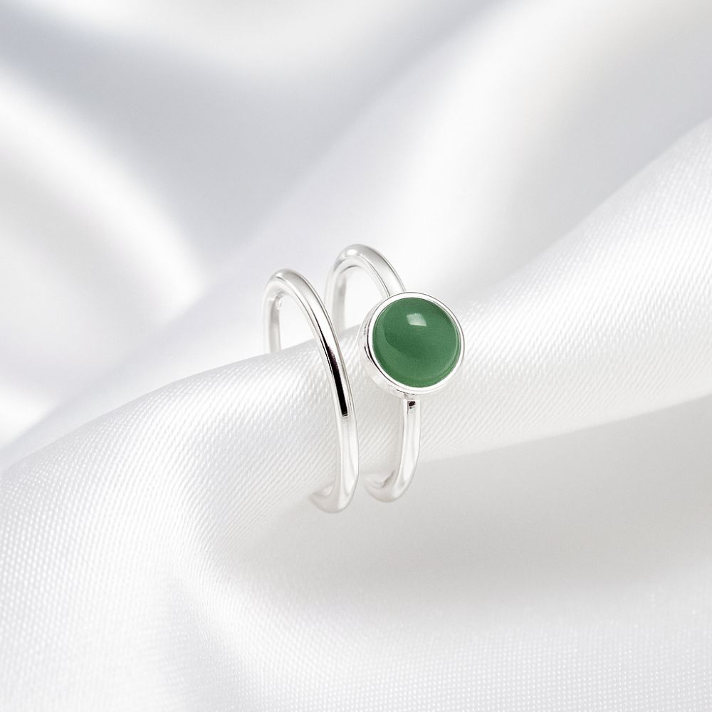 O Piercing Fake Duplo de Pedra Natural Quartzo Verde Banhado a Prata é uma joia moderna com um toque de equilíbrio e bem-estar.